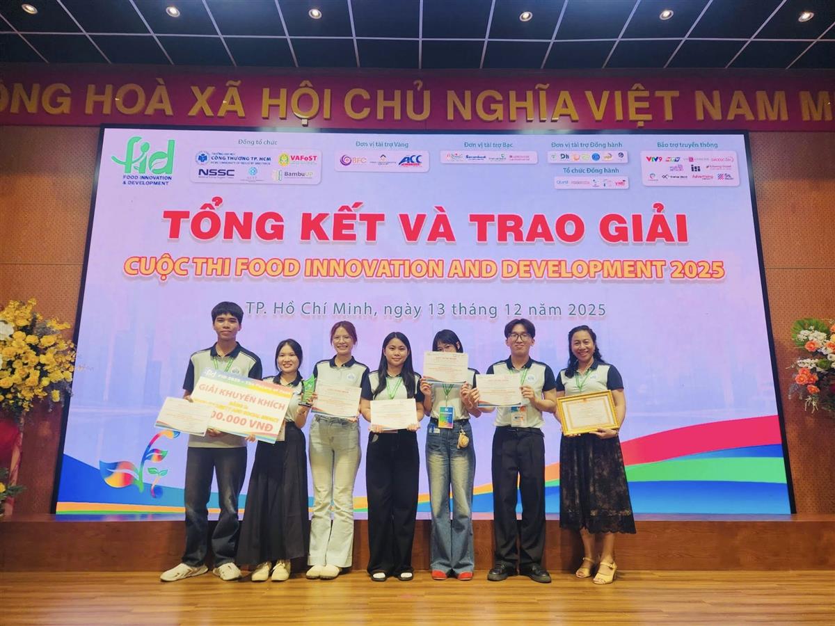 FID 2025 – cuộc thi phát triển sản phẩm thực phẩm quy mô toàn quốc, với chủ đề “The Future of Food – Tương lai ngành thực phẩm”, do Trường Đại học Công Thương TP.HCM phối hợp cùng nhiều đơn vị uy tín tổ chức, đã chính thức khép lại vào ngày 13/12/2025 sau hơn 6 tháng tranh tài sôi nổi, quy tụ 144 đội thi đến từ 58 trường Đại học, Cao đẳng và Học viện trên cả nước.
